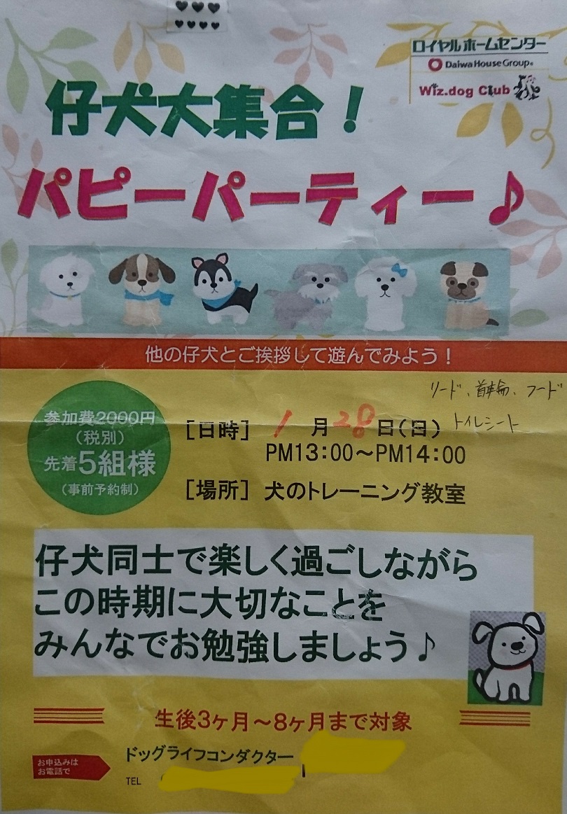 「ロイヤルホームセンター」のペット売り場に併設されたトレーニングルームで開催されているパピーパーティに初めて参加しました。